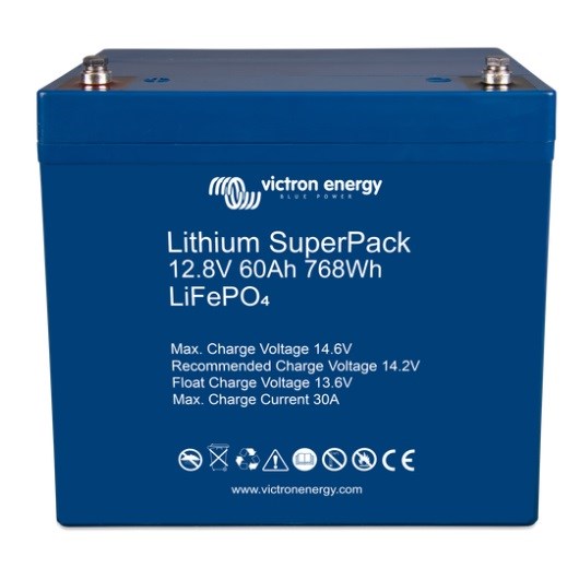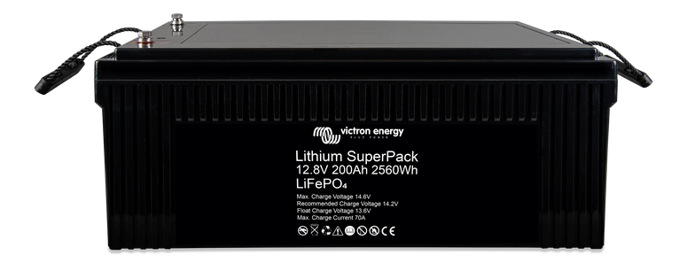 Victron Lithium SuperPack 12,8V/200Ah (M8) Integrated BMS and safety switch The SuperPack batteries are extremely easy to install, needing no additional components. The internal switch will disconnect the battery in case of over discharge, over charge or high temperature. Abuse proof A lead-acid battery will fail prematurely due to sulfation: