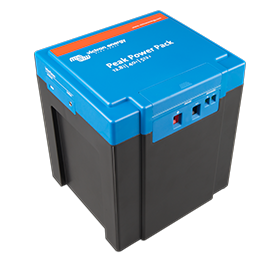 The Peak Power Pack is a complete substitute for heavy lead acid batteries in applications where high currents occur for short time. Being primarily meant for caravan movers, it is equipped with a built in charger allowing charging from the vehicle electrical system whilst travelling with the caravan. This way the pack will be fully charged upon arrival to the camping site. If necessary, the charging is possible using the supplied adapter via a grid outlet. Charging from a solar panel is also possible. *Lightweight, high-performance battery. *Space-saving. *Maintenance-free. *Built-in solar energy, regulating and charge unit. *Can be kept in storage for a year (low self-discharge). *Regulating system for extra-long service life. *Li-ion system with internal charger. Peak Power Pack PPP-40 Capacity 40Ah Stored energy 512Wh Battery type Lithium-ion (LiFePO4) Nominal voltage 12.8V Self-discharge when activated < 13 Ah /year (< 1.4 mA) Self-discharge in storage mode < 6.5 Ah /year (< 0.7 mA) Output 1: high capacity “mover” Continuous output current 150A Maximum output current (10 seconds) 200A Short-circuit current 300A Safety features :: Overload / short-circuiting / temperature / excessive discharge Maximum charging current :: 20A (no protection) Recommended charging voltage 14V (no protection) Maximum charging voltage 14.2V (no protection) Maximum cable diameter 16mm² (screw clamps) Output 2: on-board power network “domestic” Continuous output current 30A Maximum output current (10 seconds) 50A Short-circuit current 80A Safety features : Overload / short-circuiting / temperature / excessive discharge Maximum charging current : 10A (no protection) Recommended charging voltage : 14V (no protection) Maximum charging voltage : 14.2V (no protection) Maximum cable diameter : 6mm²(screw clamps) Input 1: “car/solar” Input voltage range 11 V < Vin < 25 V Current limitation 7A Input 2: “adapter” Output voltage 15V Output current 3A Input voltage 110 / 230 V 50 / 60 Hz General Operation Multifunctional push-button with dual-colour LED VE.Direct port Communication with a smartphone (VE.Direct Bluetooth Smart-dongle required) Connection to a PC (VE.Direct to USB cable required) Operating temperature Battery charging: 0°C to 40°C Battery discharge: -20°C to +40°C Storage: -20°C to +40°C (charging and discharging not possible outside the given temperature range) Humidity (no condensation) Max. 95% Weight 8.6kg Dimensions (h x w x d) 212 x 190 x 172 mm Standards Safety NEN-EN-IEC 60335-1, NEN-EN-IEC 60335-2-29, NEN-EN-IEC 62109-1 Emission / Immunity NEN-EN 55014-1, NEN-EN 55014-2, NEN-IEC 61000-3-2, NEN-IEC 61000-3-3, NEN-EN 50498