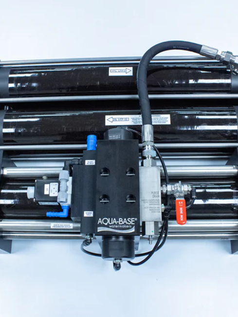 The FIJI range from AQUA-BASE® offers an energy recovery watermaker, ideal for boats with limited energy resources. Consumption is reduced to only 12 A at 12 Volts to produce 35 liters/hour .